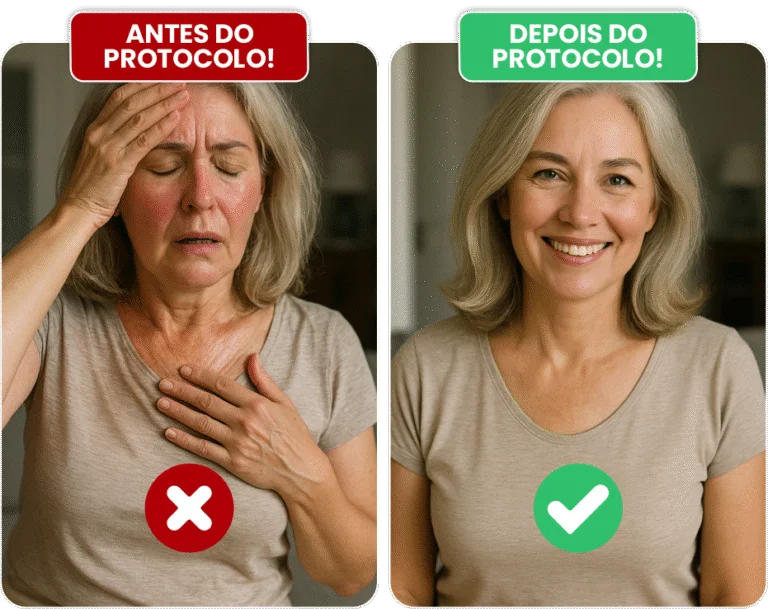 Você vai seguir um protocolo natural e caseiro, que atua como um verdadeiro atalho hormonal pra reduzir ondas de calor, inchaço e irritação. A maioria das mulheres sente alívio nas primeiras 72 horas!